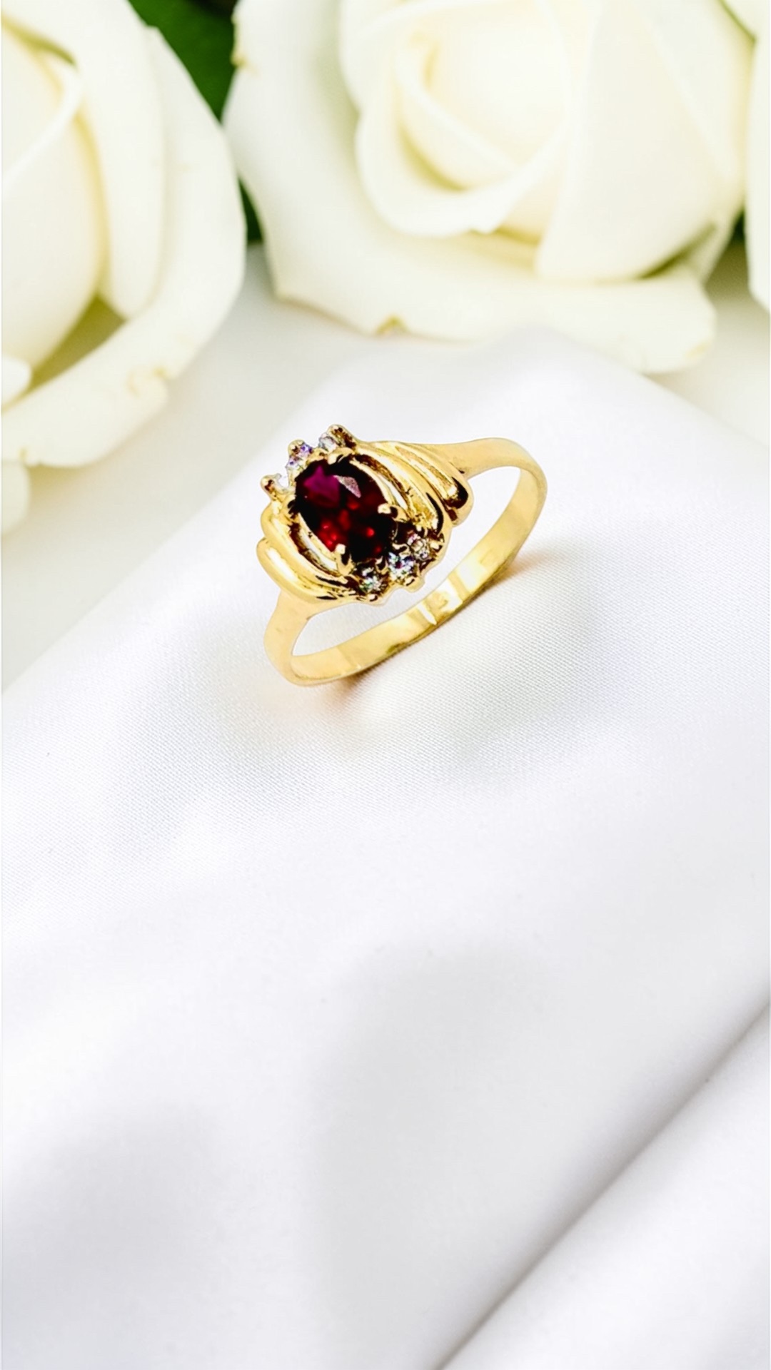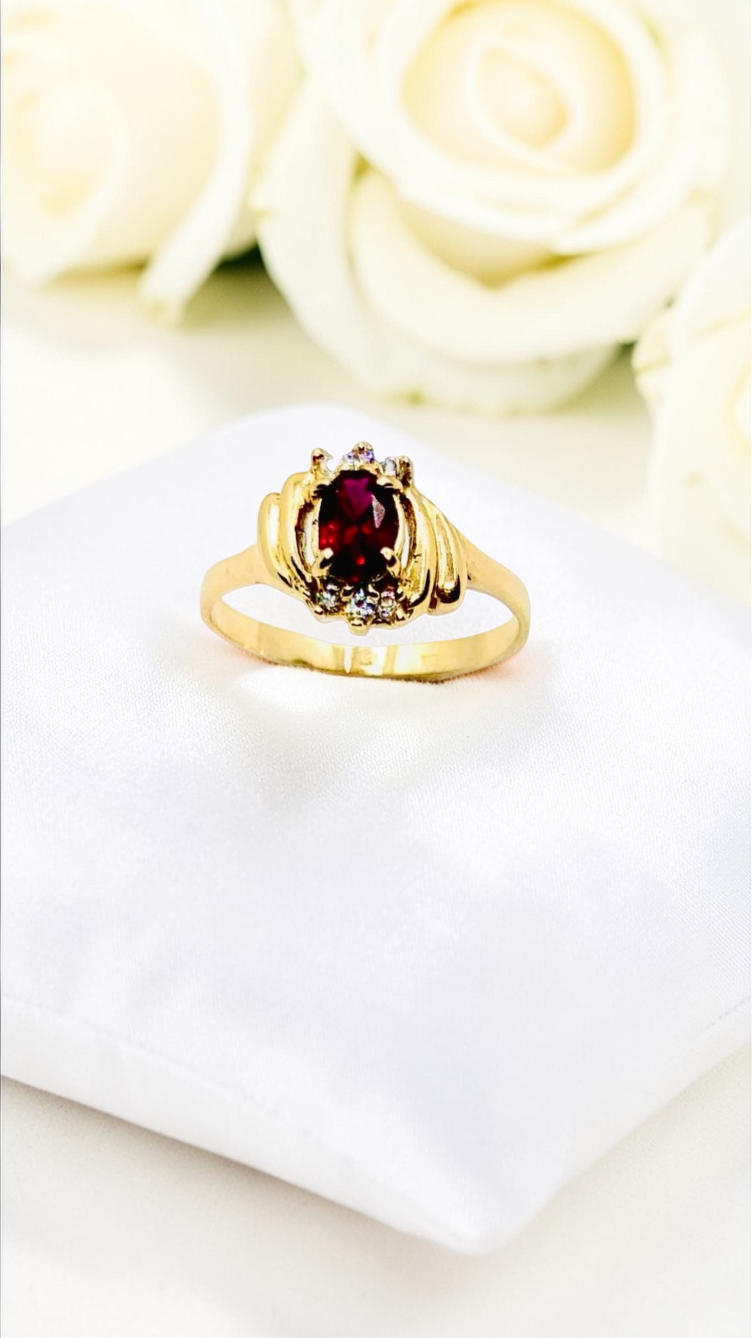 A megoldás ez az ovális bordó köves gyűrű fehér cirkóniákkal .