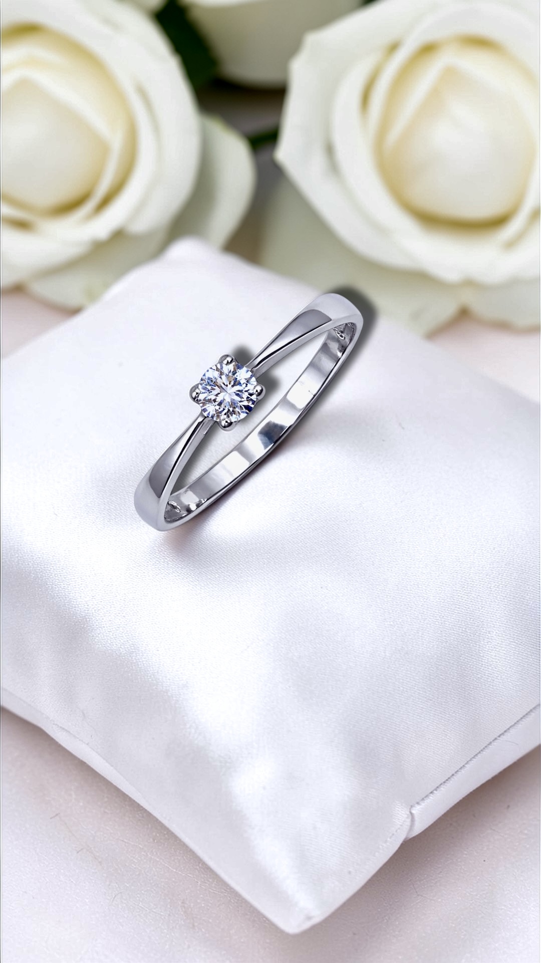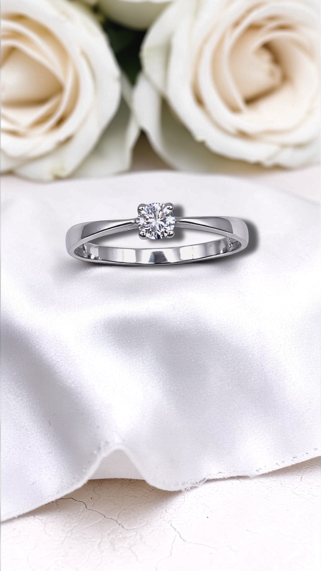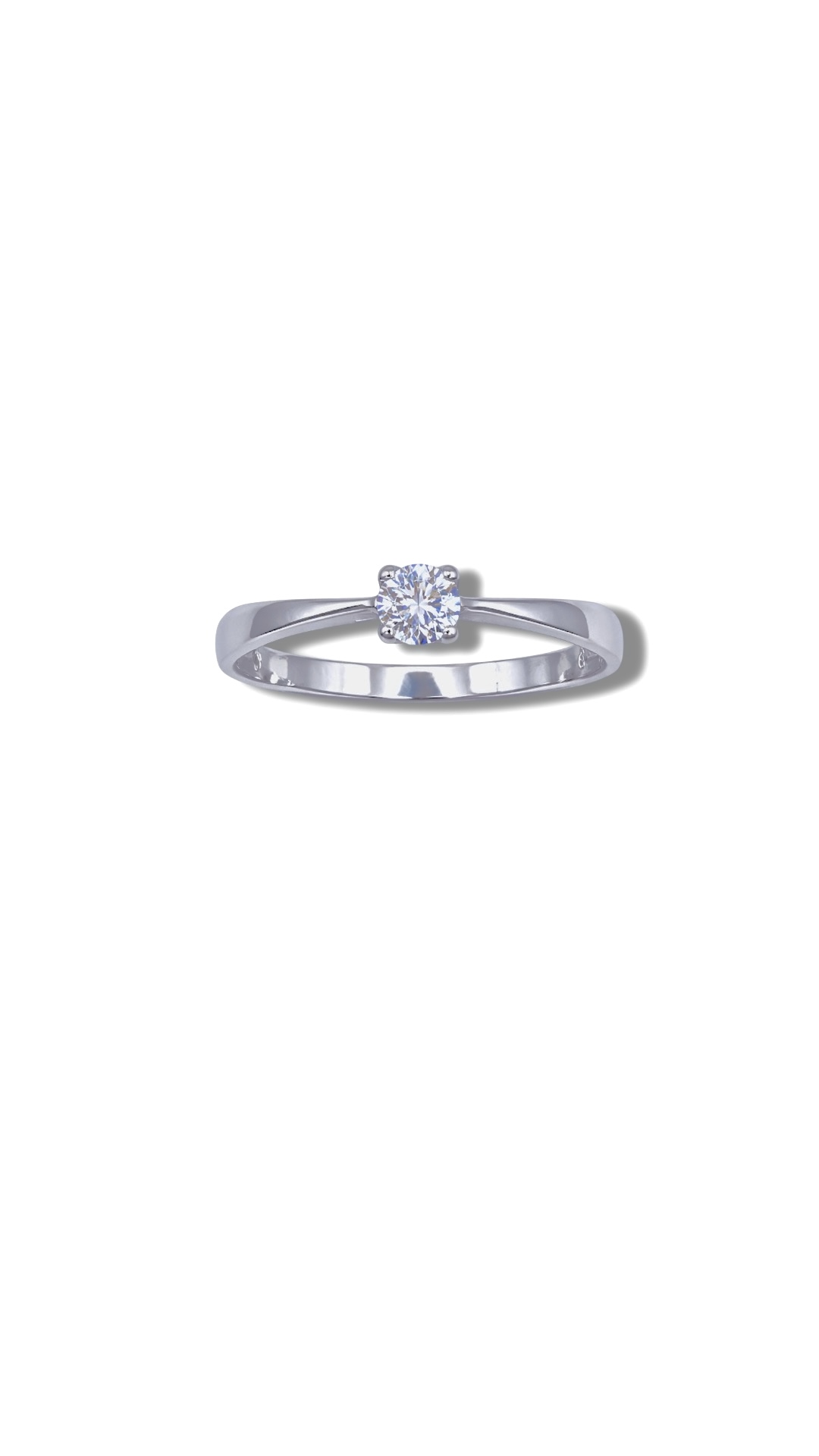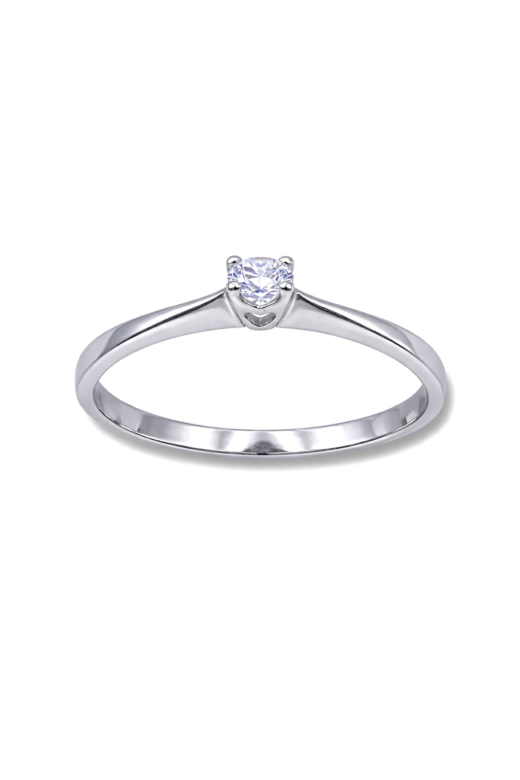 A gyűrű közepén egy ragyogó, 3,75 mm átmérőjű fehér cirkónia kő található, amelyet egy 4 karmos foglalat tart biztosan.