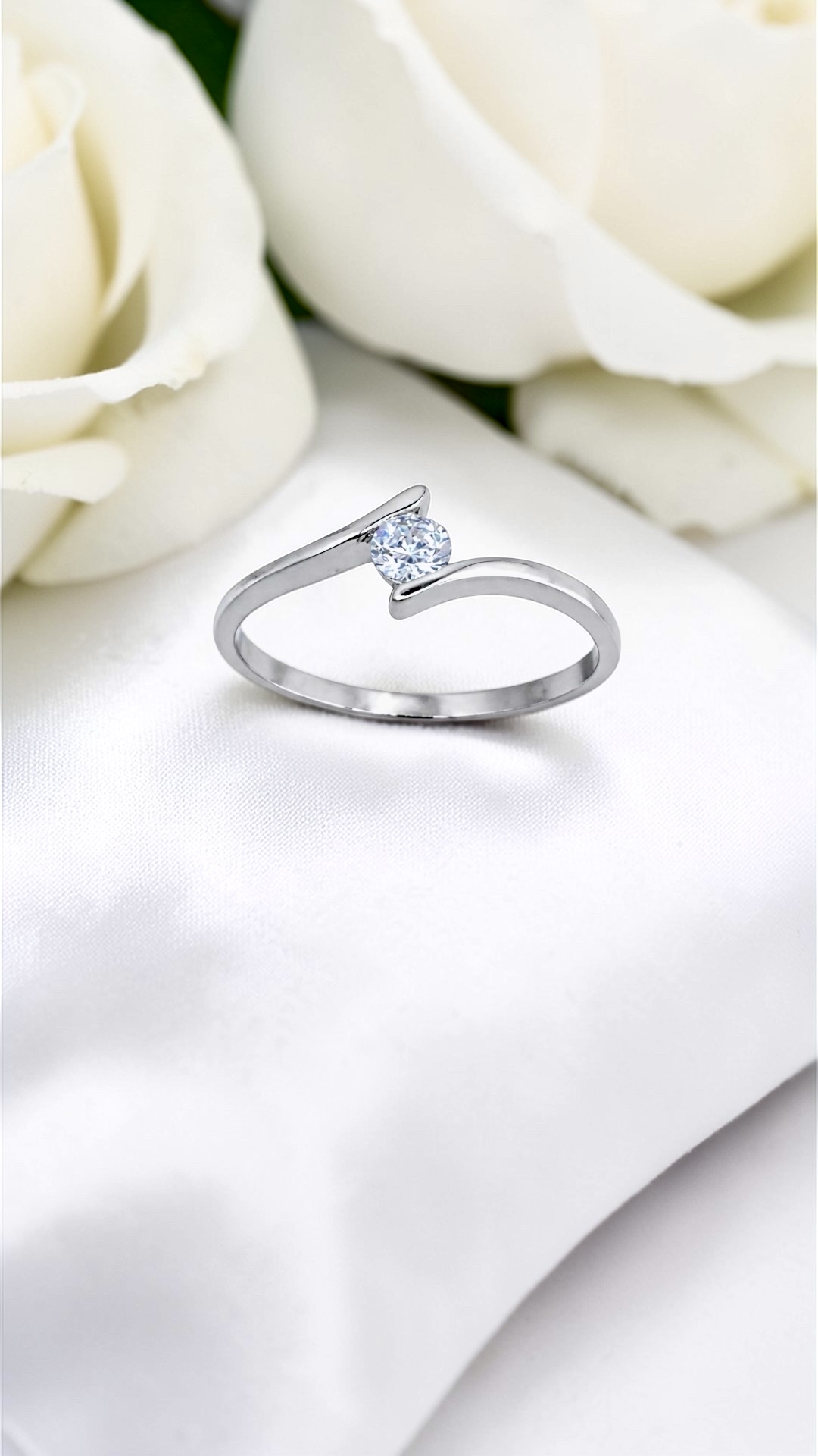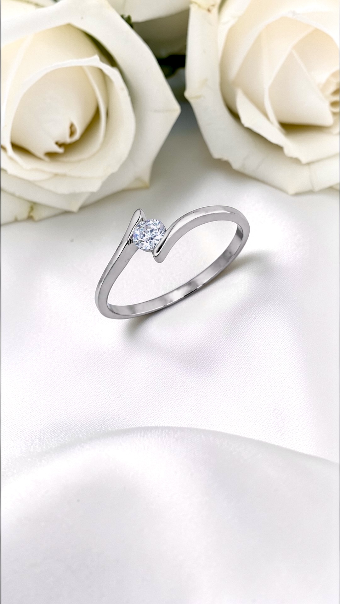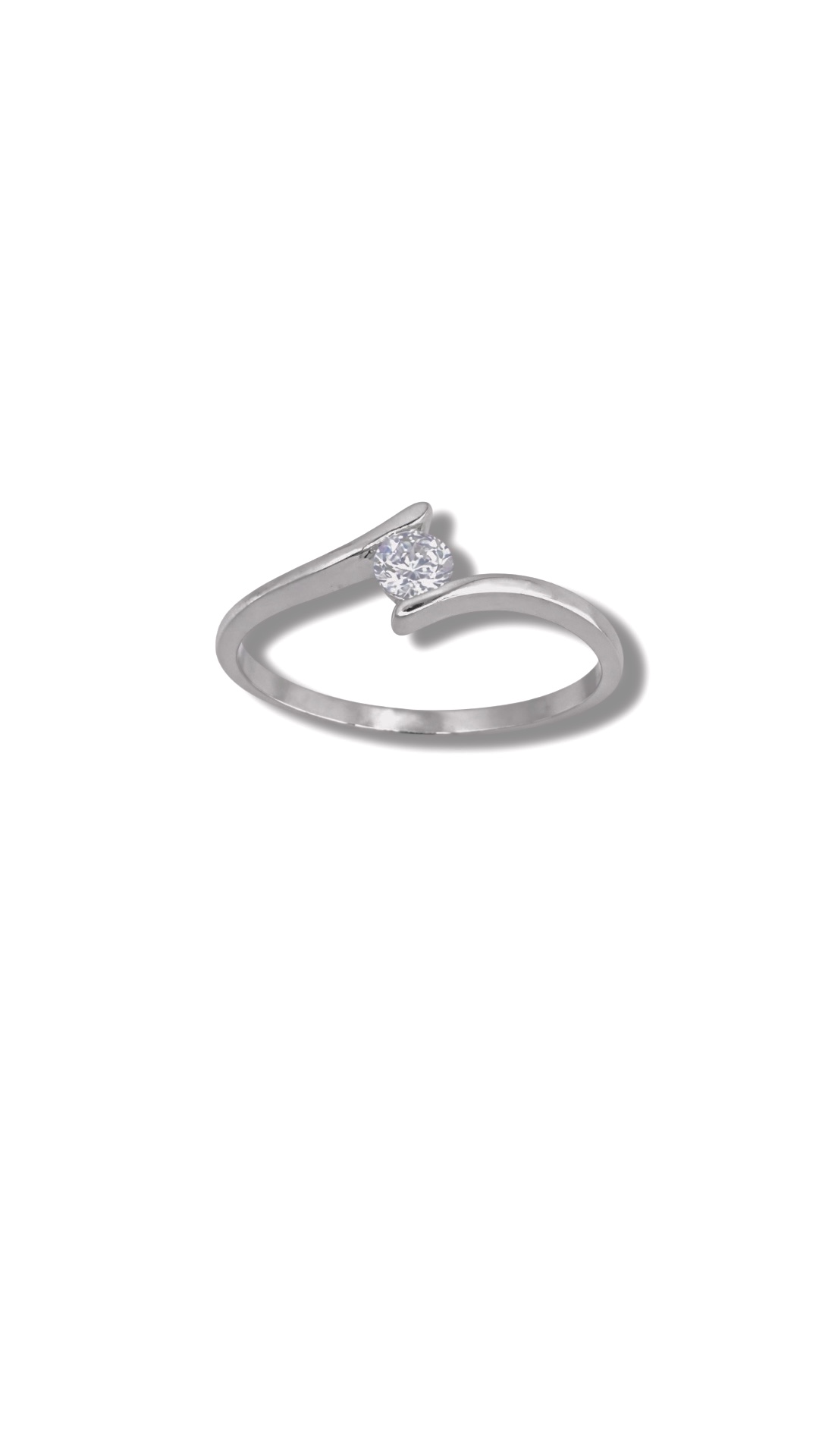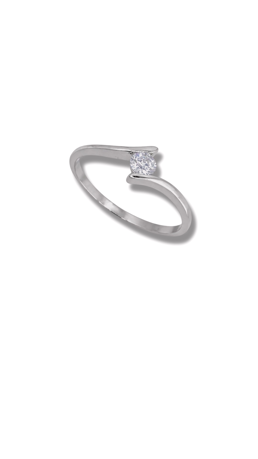 Ez a gyönyörű fehér arany gyűrű egy központi, 3,5 mm átmérőjű fehér cirkónia kővel díszített, amely tökéletesen illeszkedik a finoman kidolgozott foglalatba.