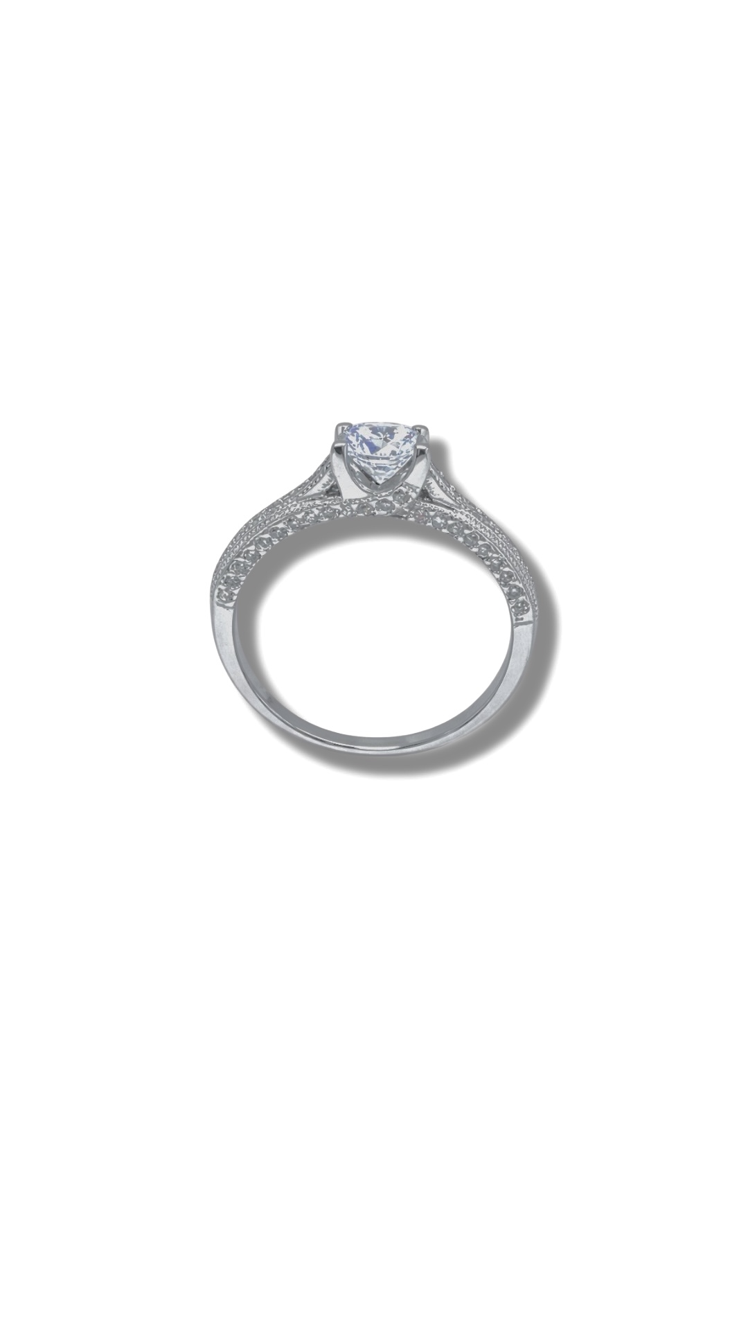 Ez a fehér arany gyönyörű gyűrű középen egy 5,25 mm-es fehér cirkónia kővel ragyog, amelyet biztos, négy karmos foglalat tart.