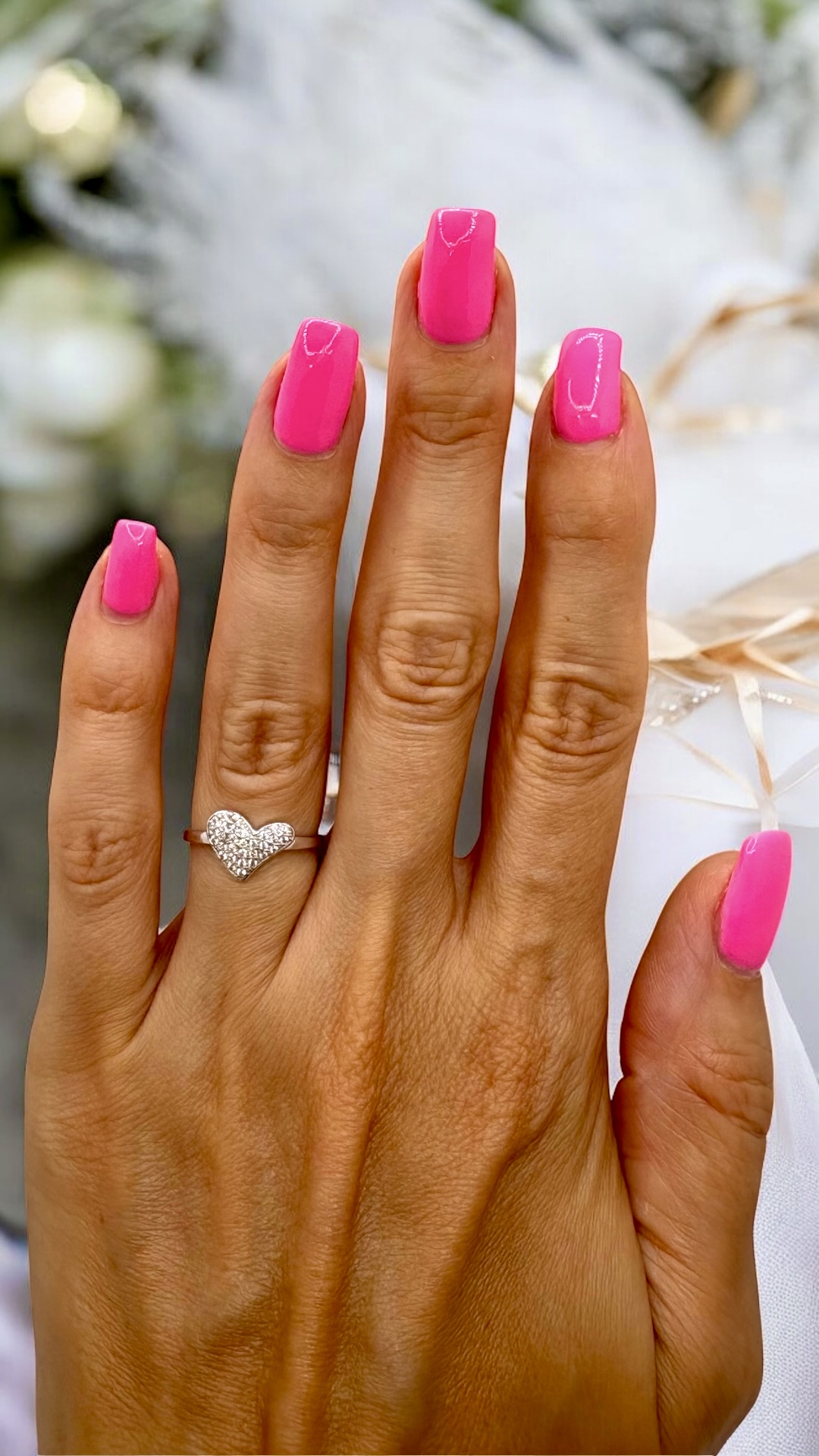 Ez a gyönyörű gyűrű szív alakú dizájnjával és csillogó fehér cirkónia köveivel az érzelmek és a kifinomultság tökéletes találkozása.