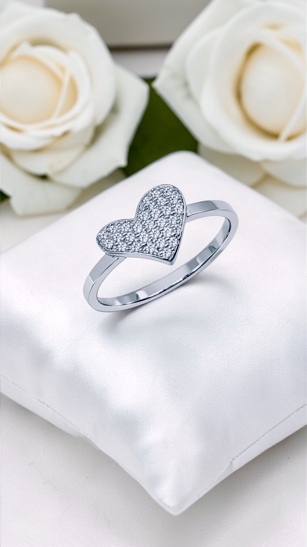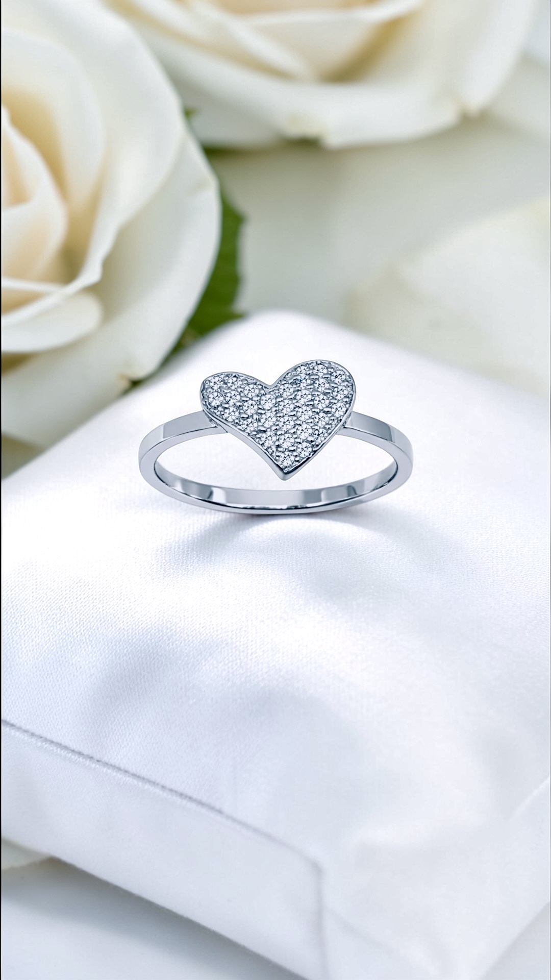 Ez a fehér arany szív alakú cirkónia köves gyűrű a szeretet szimbóluma lehet .